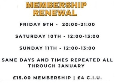 If you can not make these days/times at some point throughout January, you can leave your payment and your Green membership book behind the bar