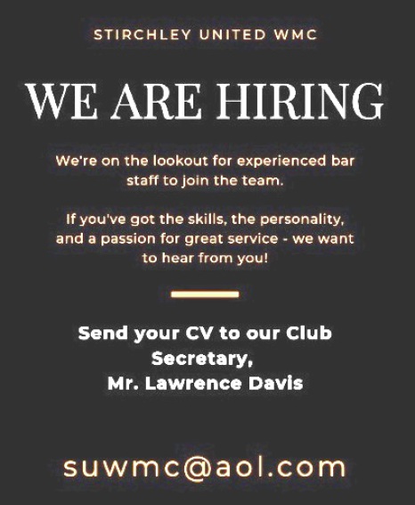 Please click the link below for more details. Any enquiries, please send your CV to our Club Secretary, Mr Lawrence Davis, at suwmc@aol.com