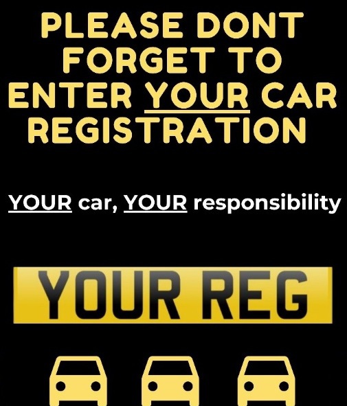 Posters have been in the Club for some considerable time - it is not our responsibility to remind you constantly to enter your VRM. You have Ten Minutes on the Club premises if you're dropping/picking somebody up. If you think that you may have to wait a little longer, PLEASE come in and enter your VRM at the console near the bar. We CANNOT be responsible for YOU forgetting to put in your VRM, your car is YOUR responsibility. Thank you,